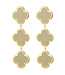 Trend alert!! Hoe leuk zijn deze gouden oorhangers met drie beige klavertjes. De oorbellen zijn perfect voor een tof feestje of festival in de zomer. Daarnaast kun je de oorbellen perfect combineren met meerdere zwarte sieraden. De oorbellen zijn gemaakt van Stainless steel in combinatie met enamel en hebben een lengte van 7,7 cm.