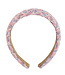 Hoe leuk is deze haarband met grof patroon in de kleur blauw en roze! De haarband is perfect op elke manier te combineren en kan zowel alledaags gedragen worden of tijdens een tof feestje. Ook leuk om deze haarband met zilveren of gouden sieraden te combineren voor een subtielere look! De haarband is gemaakt van plastic in combinatie met polyester.